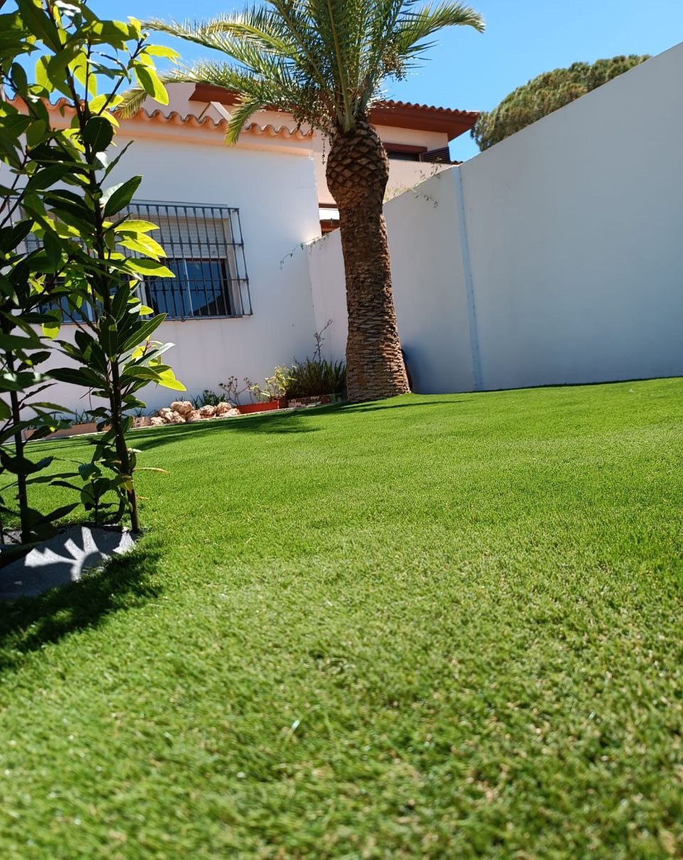 Ofrecemos un césped que ahorra agua, matenimiento, y que siempre se ve perfecto. Nostros te aportamos una garantía de 8 años. Frente a unas condiciones climáticas calurosas en Andalucía, tu césped siempre como el primer día.