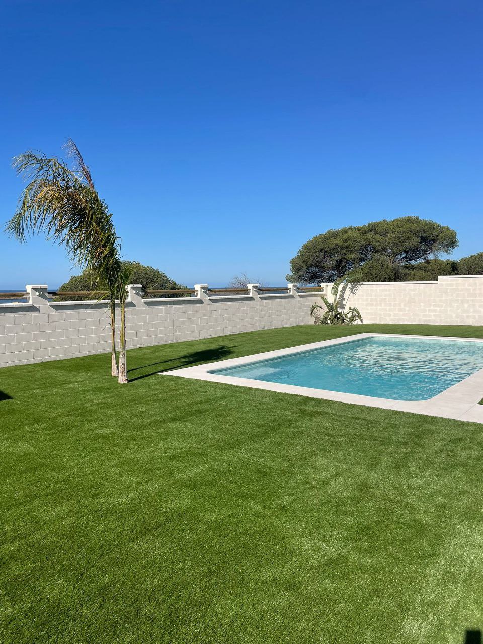 Aprovecha las ventajas de nuestro césped, diseñado para resistir la humedad y el cloro, perfecto para áreas alrededor de piscinas.