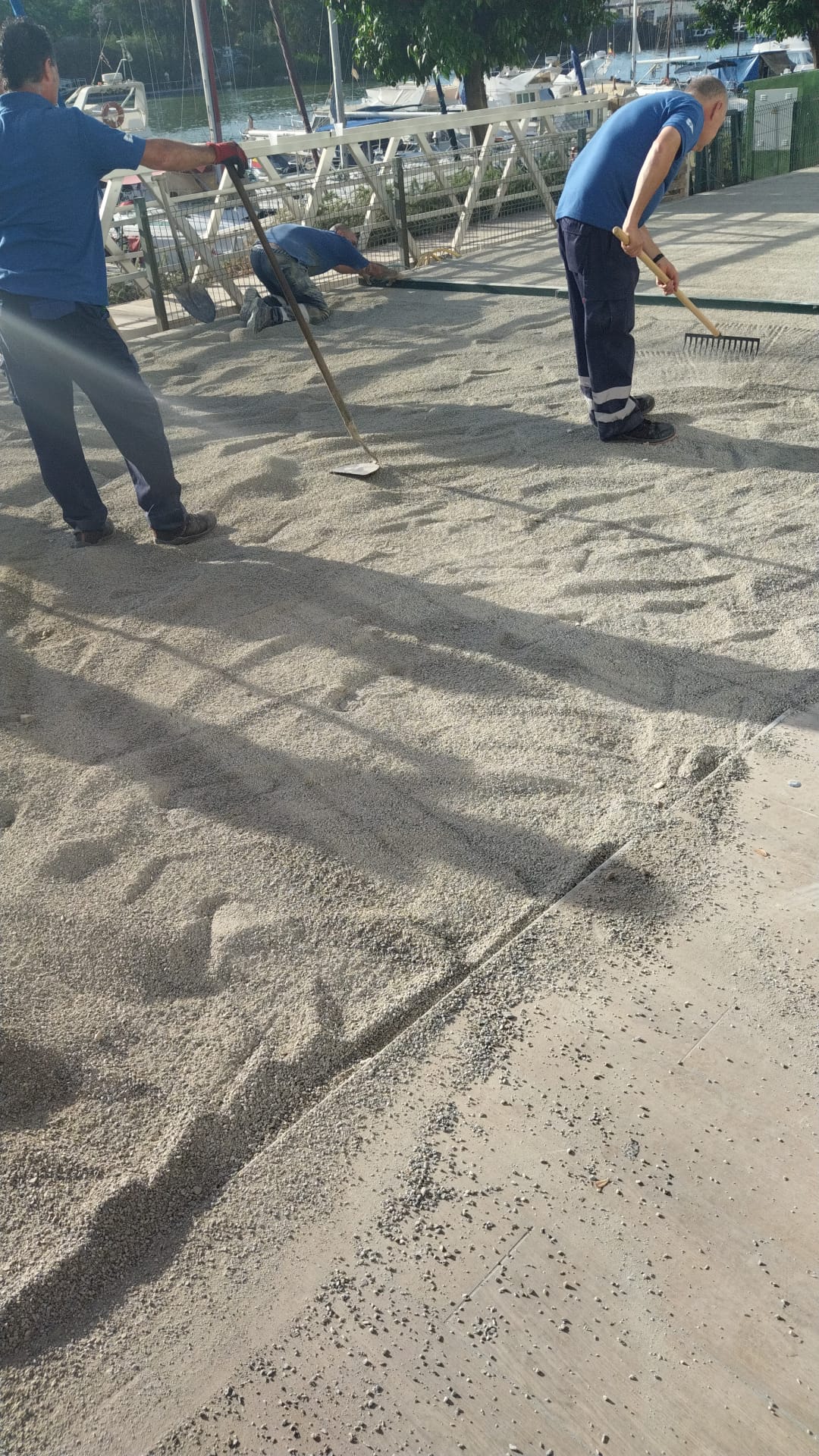 La labor fue grande y requería de una logística importante, además tuvimos que llevar cerca de 100 m3 de zahorra artificial para elevar el terreno unos 40 cms para aparejarlo al pasillo de salida del restaurante, luego rastrillamos y nivelamos el terreno para finalmente compactar la zona con rulos mecánicos de gran tonelaje.