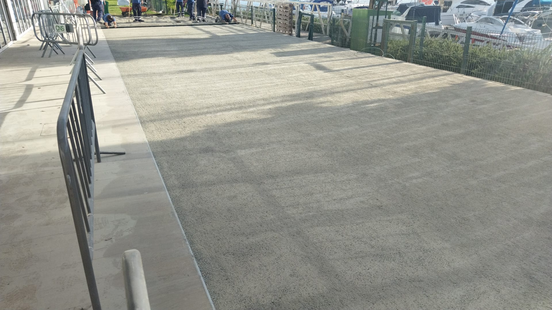 La labor fue grande y requería de una logística importante, además tuvimos que llevar cerca de 100 m3 de zahorra artificial para elevar el terreno unos 40 cms para aparejarlo al pasillo de salida del restaurante, luego rastrillamos y nivelamos el terreno para finalmente compactar la zona con rulos mecánicos de gran tonelaje.